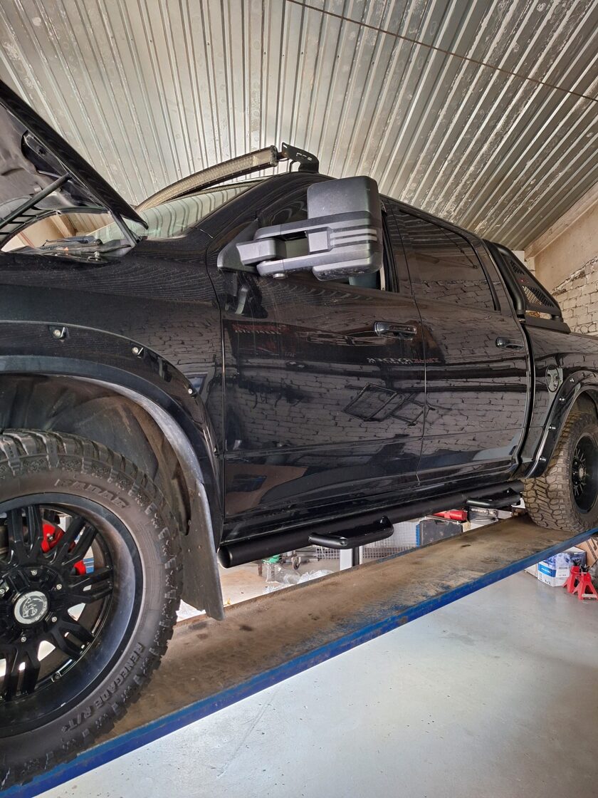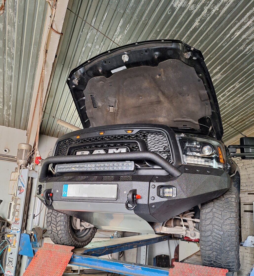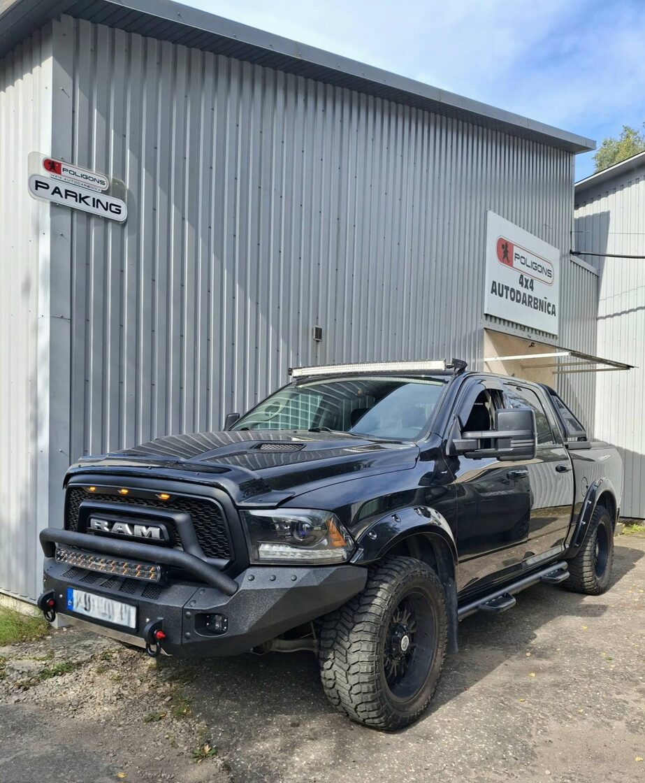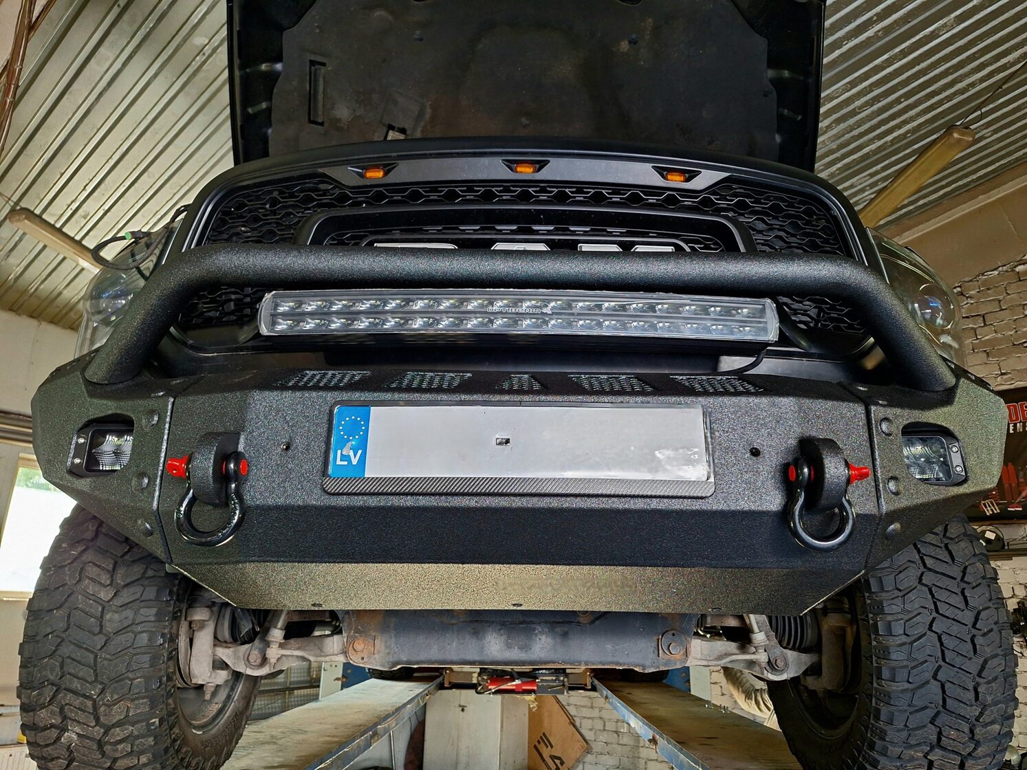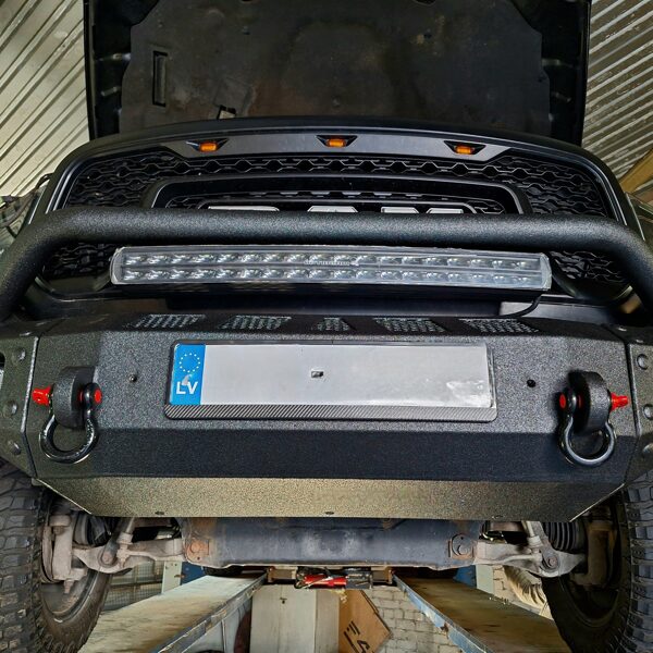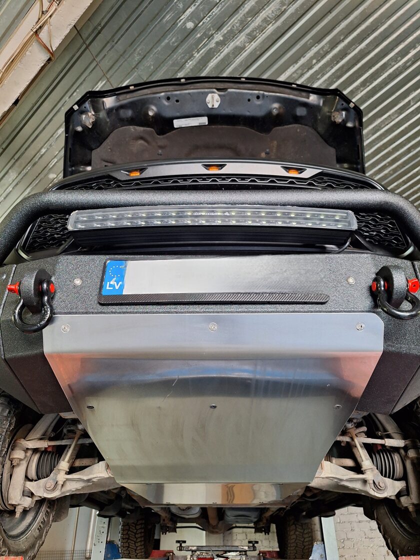 Ar iebūvētiem led miglas lukturiem un tālo gaismu Optibeam led papildlukturi. Pārklāts ar Line-X Baltic aizsargpārklājumu. Apakšā alumīnija aizsargpanna. Pārbūvēti metāla sliekšņi.
