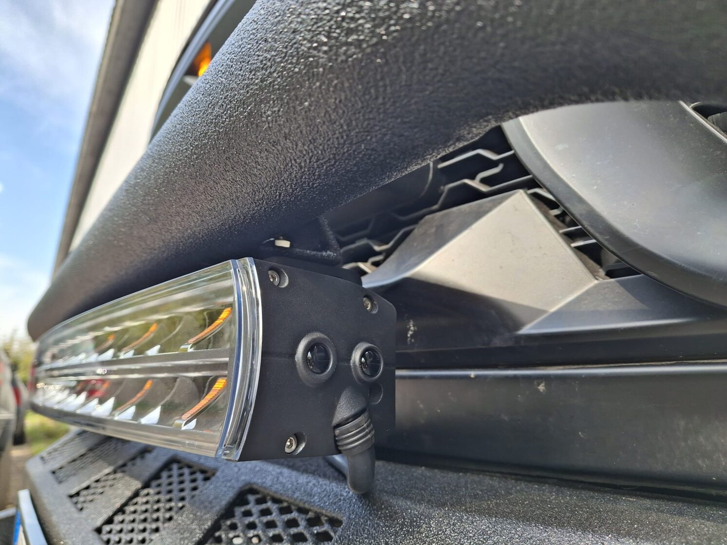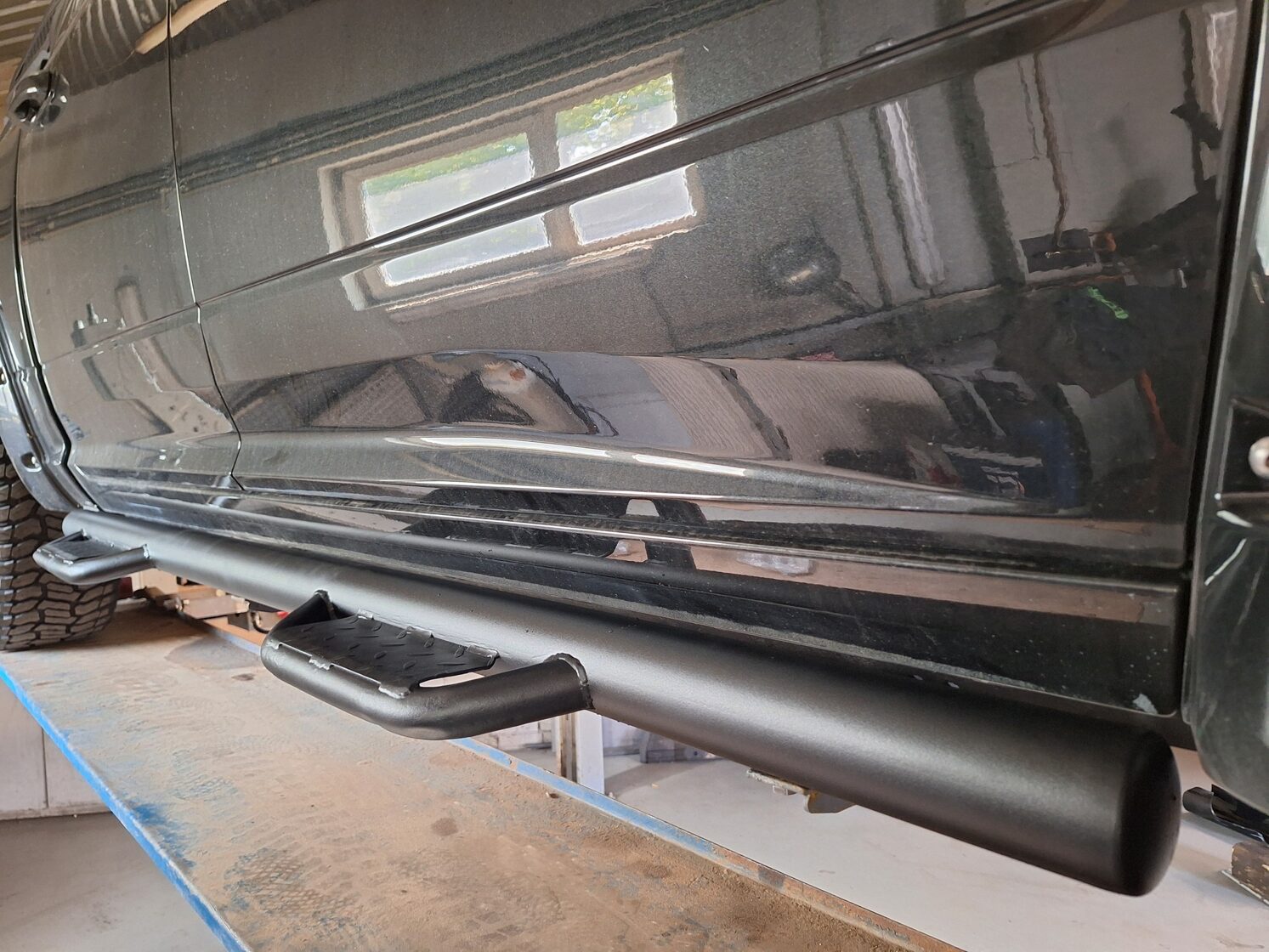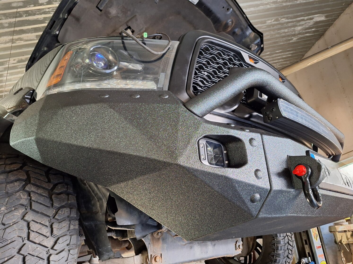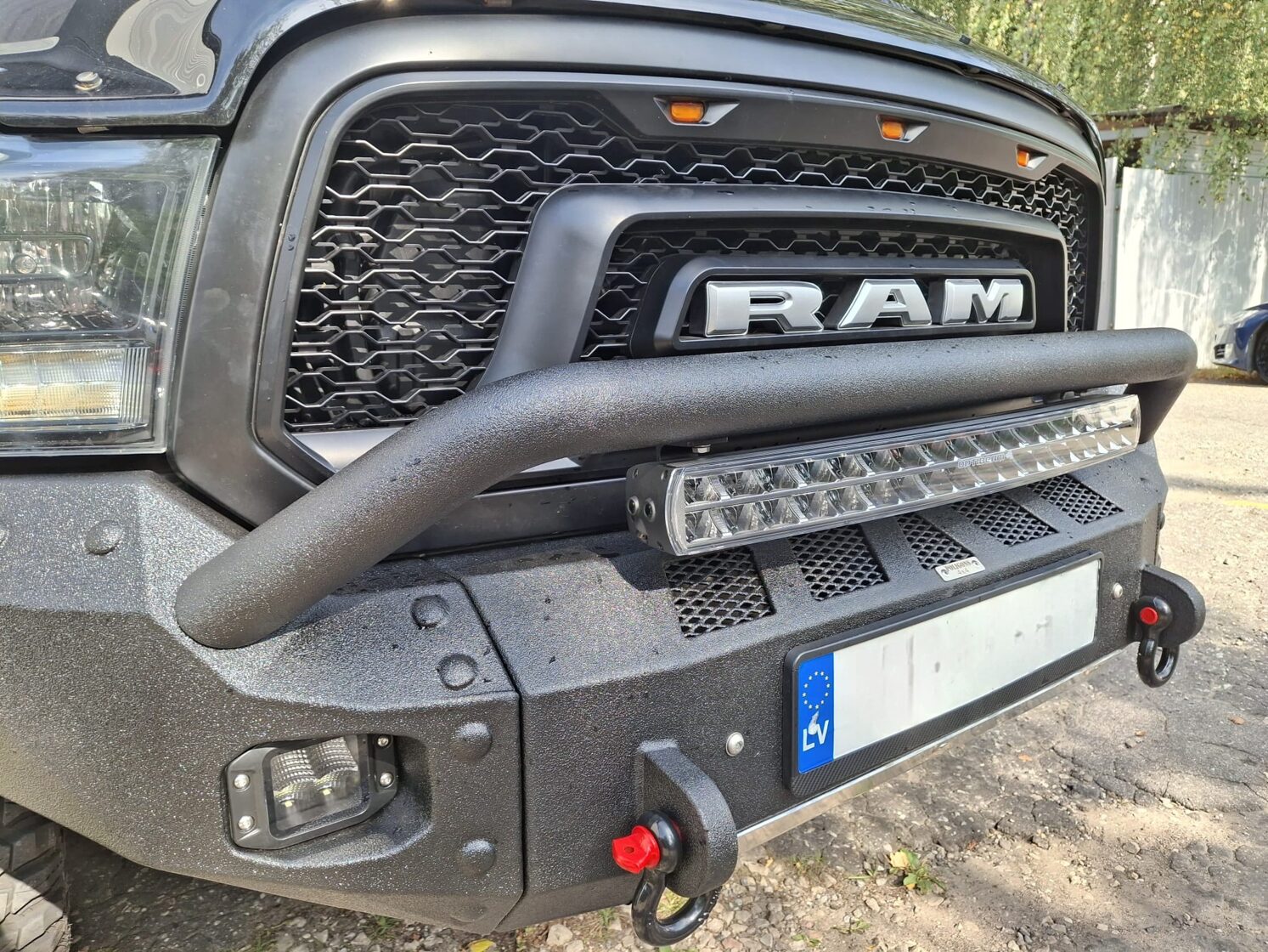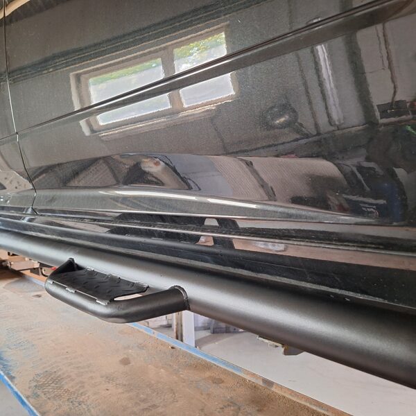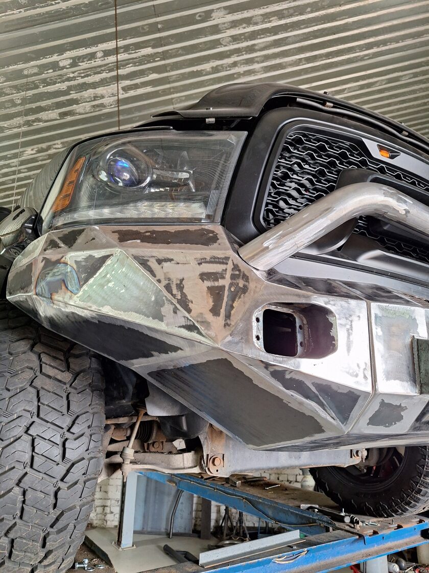 Ar iebūvētiem led miglas lukturiem un tālo gaismu Optibeam led papildlukturi. Pārklāts ar Line-X Baltic aizsargpārklājumu. Apakšā alumīnija aizsargpanna. Pārbūvēti metāla sliekšņi.